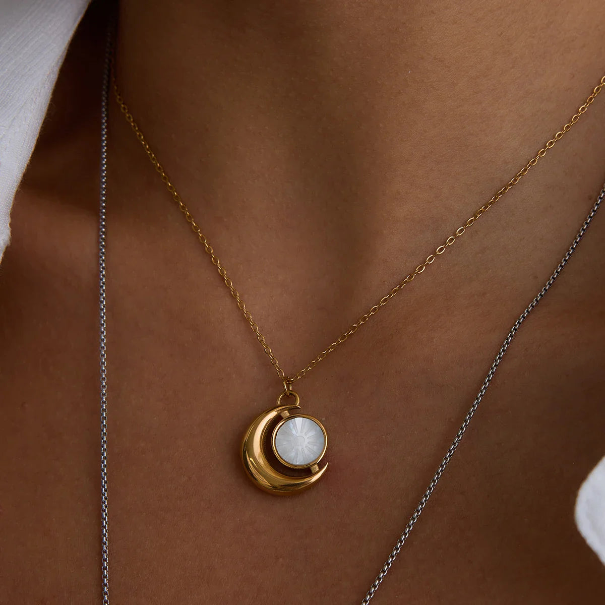 This expertly crafted Moon necklace captures the serene beauty of the lunar cycle in a refined design. Its elegant form makes it a versatile accessory, perfect for adding a subtle celestial touch to both everyday and special occasion outfits. Crafted with attention to detail, this necklace offers a timeless piece that complements a sophisticated style.